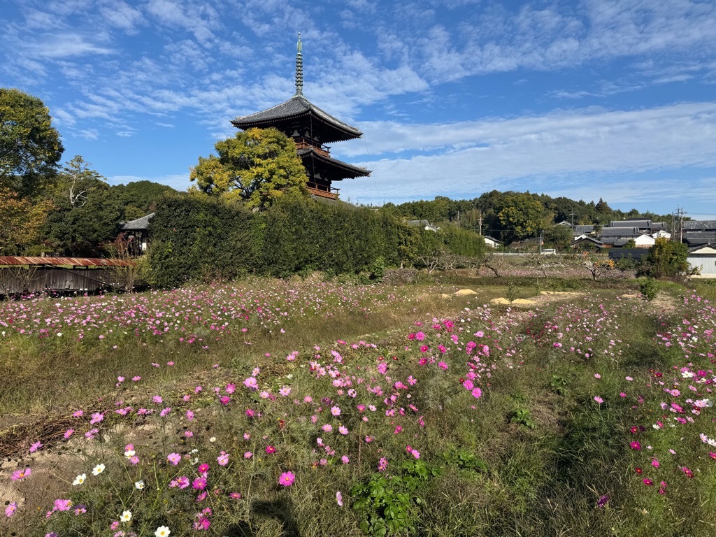 斑鳩町では世界文化遺産 法隆寺などの歴史的景観と田園風景が一体となった「斑鳩の里」の風景・景観を保全するため、農家の方々の協力を得ながらコスモスを栽培しています。開花情報を掲載しますので、是非参考にしてください。(開花情報については、1週間毎に更新します)
