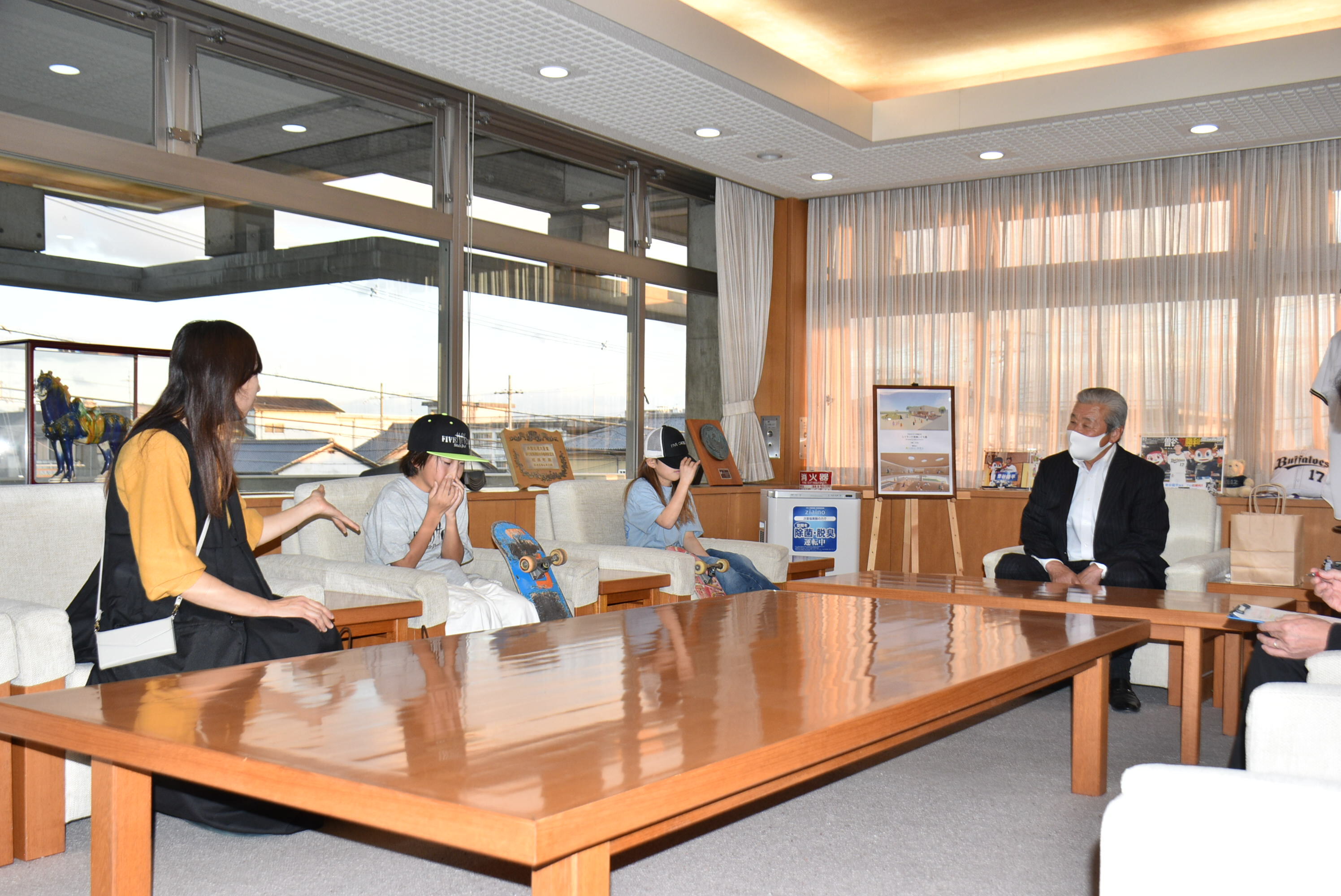 令和6年1月13日(土)に千葉県のイオンモール幕張新都心で開催されるFlakeCUP2023‐2024CHAMPIONSHIPに出場する斑鳩東小学校6年生の西川湊さん、斑鳩東小学校2年生の西川結椛さんが中西町長を表敬訪問されました。