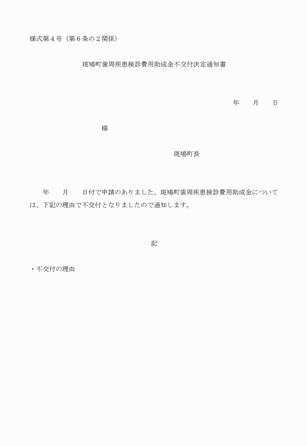 第5条 町長は、検診を受けようとする者に対し、歯周疾患検診票(様式第1号。以下「検診票」という。)を交付するものとする。