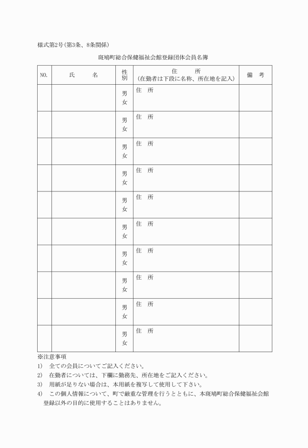 2 登録団体と決定したときは、斑鳩町総合保健福祉会館登録団体登録台帳(様式第4号)に登録するものとする。