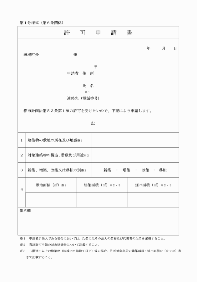 ○斑鳩町都市計画法第53条第1項の規定による建築の許可に関する要綱
