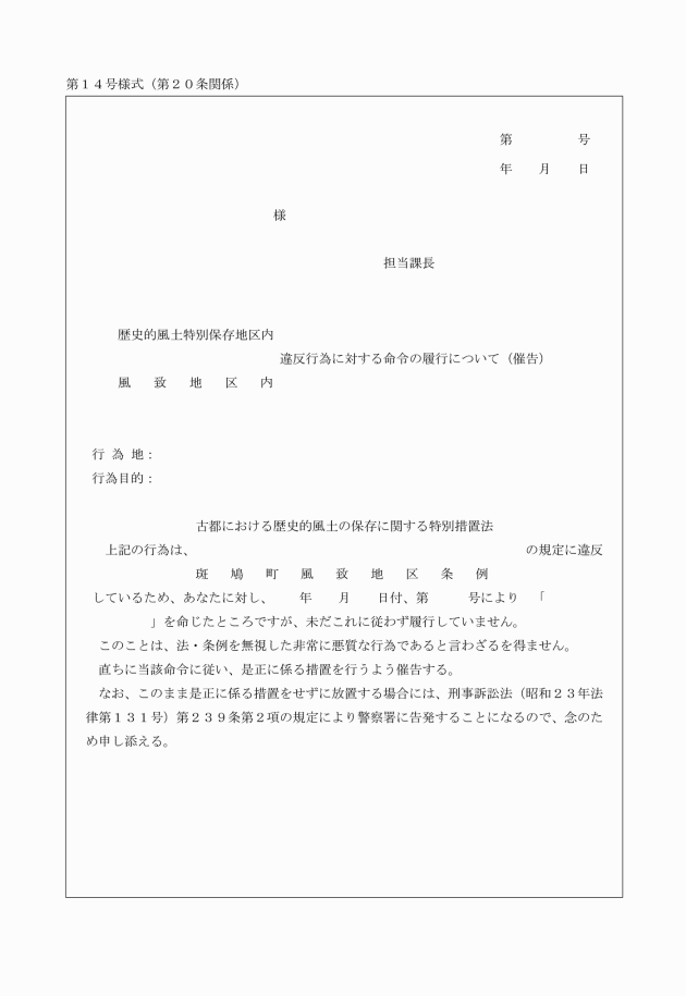 ○斑鳩町風致地区内等における違反行為等に関する事務処理要領