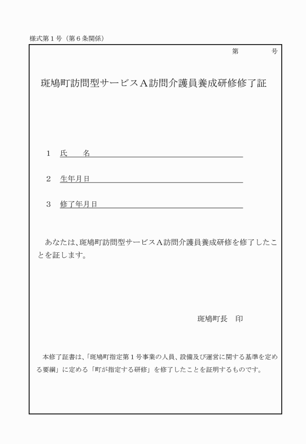 第3条 訪問型サービスA訪問介護員養成研修の実施主体は、斑鳩町とする。